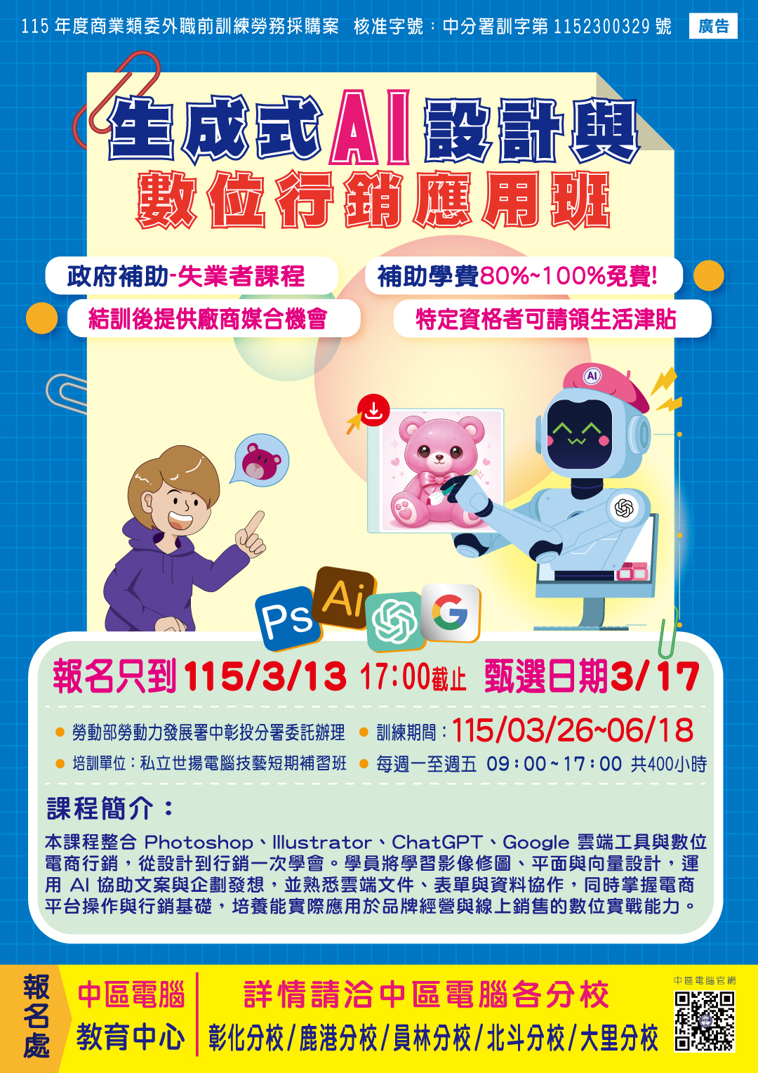 【彰化職前】生成式AI設計與數位行銷應用班【3/13截止報名】