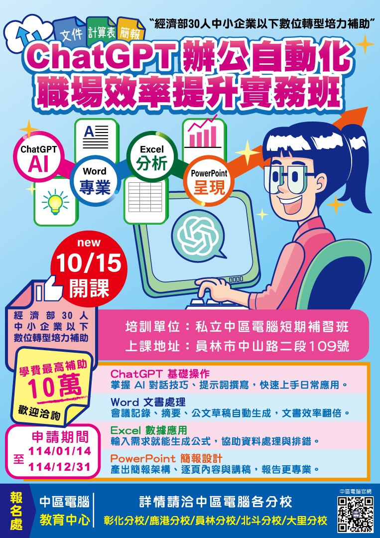 ChatGPT辦公自動化職場效率提升實務班(經濟部補助)
